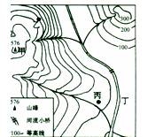 B处地形是          (山脊、山谷),若图中有一条河流,则该河流应在         处附近,流向                      。(6分)