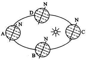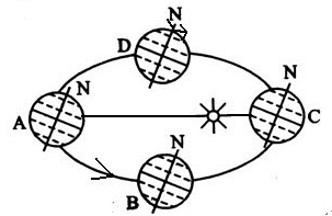 (2)当地球位于C处时,北半球是_______(节气),太阳直射在_________(纬线)上。当地球位于B、D两处时,佛山的昼长为小时__________ 。(6分)