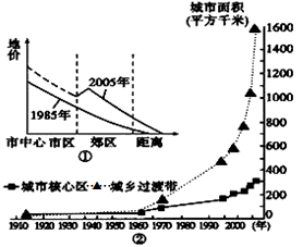 1.图①中郊区地价变化的原因最有可能是2.图②反映了该城市