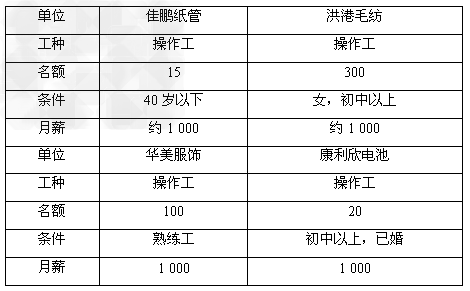 材料一:江苏是我国经济大省,但省内区域经济发展水平并不平衡。为了促进共同富裕,江苏省制定了苏北崛起、振兴苏中的科学发展战略。下图中的箭头a、b分别表示江苏省内的人口流动和产业转移的方向;下表为苏北某县开发区内企业招工信息表(部分)。