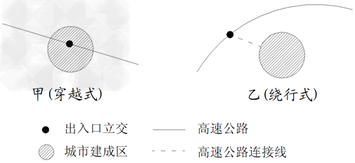 1、单选题  读高速公路与城市建成区空间关系示意图,完成1-2题。