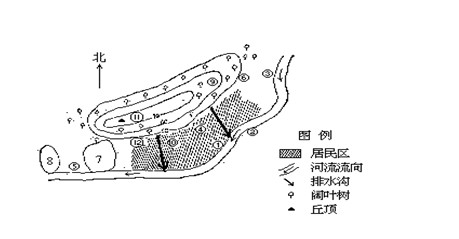 2、综合题  下图是一个市镇的平面略图。该市镇冬季常吹偏北风,夏季常吹东南风。