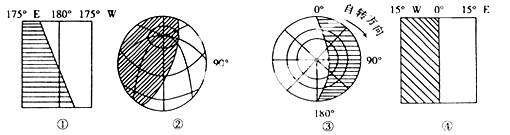 (6)新的一天的范围是从0:00所在经线向东到180°经线。根据20°W的地方时为6:00,0:00所在经线的经度为110°W,所以新的一天的范围是从l10°W往东到l80°。
