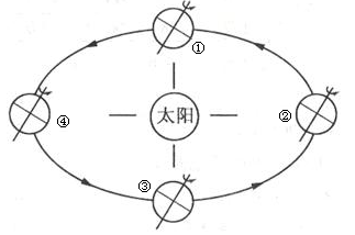 (5)当地球位于上图①处时,极点正午太阳高度角为?,之后,太阳直射点正向?(南、北)半球移动。(2分)