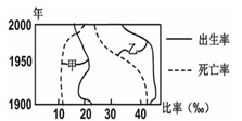 3、单选题 下图为“甲、乙两国人口出生率与死亡率变化曲线图”。读图,完成下列问题。