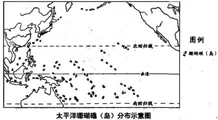 本题解析:1.据图中珊瑚礁(岛)分布在南北回归线之间大陆架和岛屿附近海域,则可判断珊瑚适宜生长在温暖清澈的浅海。