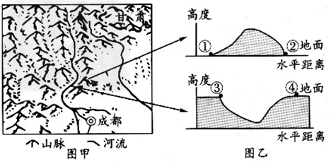 2、单选题 下图是某地理研究性学习小组进行野外考察后绘制的某地地貌景观图(图甲)及地形剖面图(图乙)。读图回答1—2题。