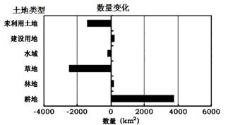 5、单选题  下图为1995~2005年西辽河流域各土地利用类型数量的变化示意图。读图回答题。