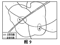 2、单选题 每个城市都为一定的区域提供服务。读图9回答问题。