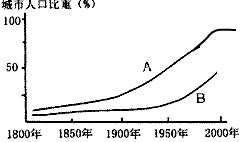 小题1:AB两条城市化进程的曲线代表发达国家是___曲线,代表发展中国家的是___曲线。