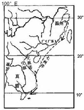 1、单选题 《真腊风土记》(元)记载:①自温州开船,西南行,历闽、广海外诸州港口,过七洲洋,经交趾洋到占城。又自占城顶风可半月到真腊;②真腊四时常如五六月天,不识霜雪,半年有雨,半年绝无;③信教者削发穿黄,偏袒右肩,其下系黄布裙,跪足。据此并结合图1,回答问题。