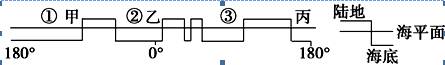 5、单选题 下图所示为“23°26′S的海陆分布示意图(甲、乙、丙为陆地,①②③为海洋) 。”读图回答11~12题。