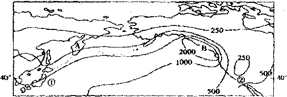 3、综合题 读北太平洋海域附近地区年降水量分布图,回答问题。(12分)