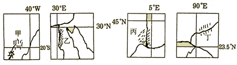 2、单选题 读图,甲、乙、丙、丁四个地区经济作物,正确排序是?(?)