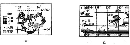 5、综合题 读甲、乙两幅图,完成下列问题。(10分)