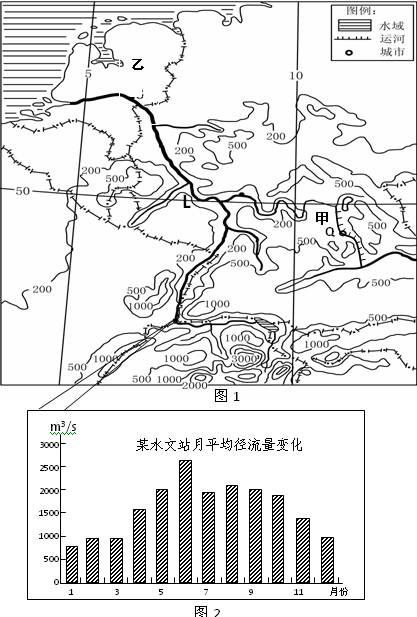 (3)简述L河上游流量季节变化特点并分析原因。(10分)