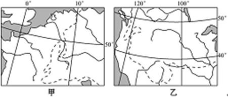 (2)甲图中50°N地区冬季(较乙相应地区)更加温暖湿润。