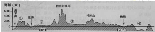 4、单选题 下图为世界某区域沿40°N的地形剖面图。读图回答下列各题。
