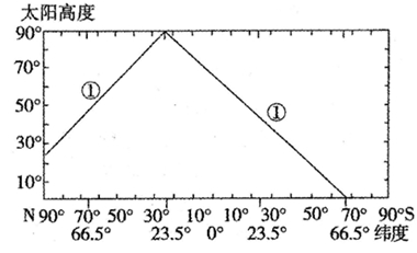 小题3:图中,①线表示夏至日全球不同纬度正午太阳高度分布状况,请在图中画出10月17日全球不同纬度正午太阳高度分布的大致状况。