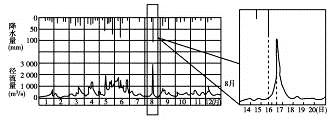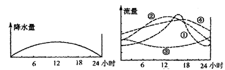 4、单选题 河流径流量的变化与河流所在流域的植被覆盖情况有着密切的联系。读左图“某地降水量”与右图“河流径流量日变化示意图”,回答35-36题。
