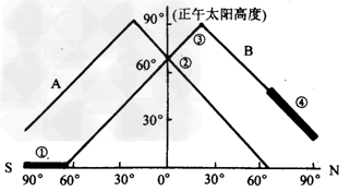 (1)折线A表示?日前后全球各纬度正午太阳高度分布状况。