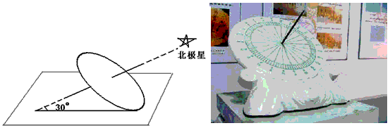 ? 现拟在嘉兴一中(30.5°N,120.5°E)科技馆门前建造一座赤道日晷。在安装日晷时,首先选择一块平坦的地方安放日晷底座。晷盘与底座水平面的夹角应为59.5°,使日晷晷盘与赤道平面平行。