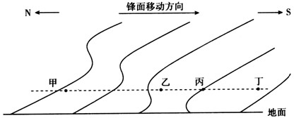 3、甲、乙、丙、丁四处,位于冷气团中的有