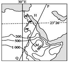 1、单选题 下图为“世界某区域年等降水量(单位:毫米)分布图”,若PQ为昏线,此时可能出现的地理现象有( )