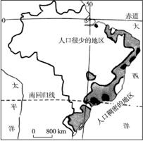 4、综合题 读巴西的人口分布图,完成下列问题。