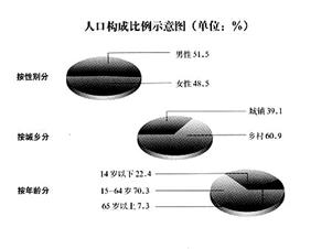 (2)结合中国人口构成比例示意图分析,中国人口构成总体呈现?