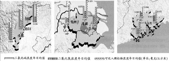 (3)三地区大气污染相同点有:____,____,__?。(3分)