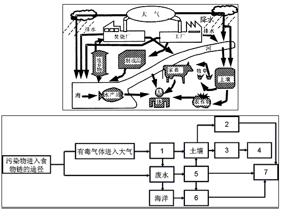 2、综合题 读污染物迁移模式示意图,完成填空。