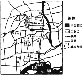 小题1:图中甲、乙、丙三地依次对应的城市功能区是 ( )?