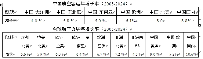 (3).读有关航空运输年增长率预测表,正确的叙述是(?)(多选)
