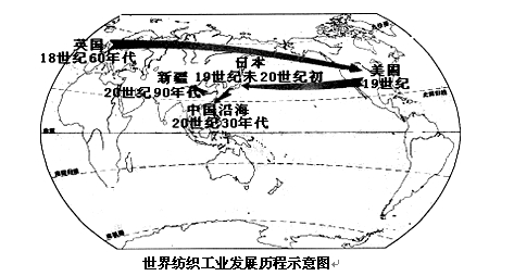 (1).读示意图,试概括全球纺织工业空间迁移的地理特点。