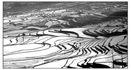 小题1:本题主要考察学生的读图分析能力。由题可知本图是农业景观图,结合基础知识可知该地是梯田景观,应该分布于南方低山丘陵地形区,四个选项中,广西境内多丘陵,属于两广丘陵的一部分,故答案B正确。