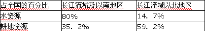 1、单选题 分析我国长江流域以南、以北地区水资源、耕地资源数据表,回答下列各题。
