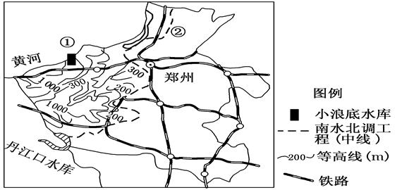 (2)①为小浪底水库,其作用可根据田纳西河知识迁移过来即可:防洪、除沙(防淤)、防凌汛、旅游、发电、灌溉、供水等。②为南水北调中线工程,其主要作用为缓解华北地区水资源短缺现状。