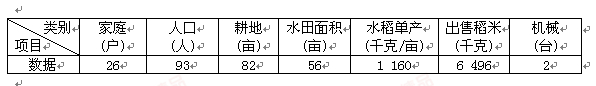 (4)为了研究河南省部分地区农业发展状况,有一地理兴趣小组对该省东南部某地的一个农村进行了社会调查,获得下表资料: