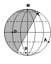 (3)A位于白天的中央,时间为12点;D点位于赤道,昼夜平分,昼长为12小时;用数格法,C点白天一共有两格,1格为2小时,为4小时。