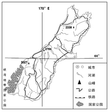 小题1:结合经纬网和河流流向知该岛屿以山地丘陵为主山脉,主要山脉呈东北—西南走向;根据该岛面积及其地势变化判断③正确;峡湾属于一种冰川侵蚀地貌,④对。该岛位于太平洋板块和印度洋板块的消亡边界。