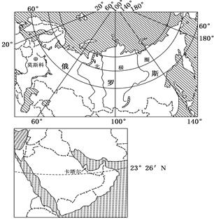 2、单选题 2018年与2022年世界杯足球赛将分别在“航母”大国俄罗斯(面积1700万平方千米)和“袖珍”小国卡塔尔(面积1.14万平方千米)举办。读两国简图,回答小题。