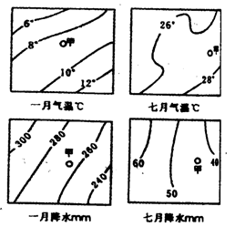 3、单选题 读某地区气温、降水分布状况图,回答下列各题。