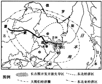 (1)①距海近;②临国沿边;③中蒙通道的起点;④长吉图开发区东端;⑤东北亚经济