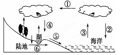 (1)读图,根据所学知识,可以判断水循环的各环节名称。①水汽输送、②降水、