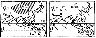 (1)左上图表示北半球的________季。此时东亚盛行_________风(风向)。此时我国华北地区的天气