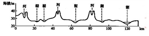 1、单选题 读我国某地形区典型地段的地形剖面。完成问题。