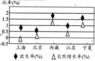 本题解析:1.本题考查地理图表的判读能力。根据死亡率=出生率-自然增长率。所以图中死亡率最高的是上海市。所以本题选择A选项。