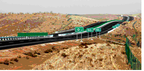 3、填空题 2013年12月7日,新疆首条沙漠高速公路全线通车。下图是该高速公路中的某沙漠路段。读图回答下列各题。