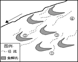 2、单选题 鱼鳞坑是工程措施和生物措施相结合防止水土流失的一种 方式,它能够拦截地面径流,起到保持水土的作用。应俯视形状像鱼的鳞片一样,所以叫鱼鳞坑。图中适宜植树的地点为(?)